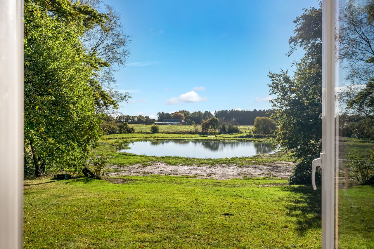 De tidligere dambrugsarealer er omdannet til søer, snoede åløb og naturlige eng- og vådområder, hvilket skaber en unik ejendom med et rigt dyreliv og en helt særlig stemning.