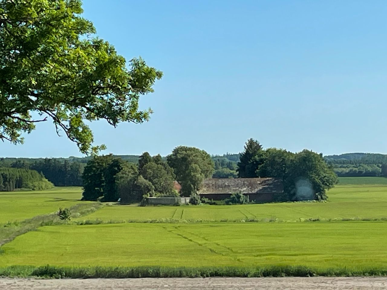 Ejendommen er tilbagetrukket fra vejen og byder på en storslået udsigt over skov, marker og naturarealer. Den omfatter ca. 44,7 hektar jord og er beliggende kun 5 km fra Give, hvor der findes skole, daginstitutioner, fritidsaktiviteter og dagligvarebutikker.
