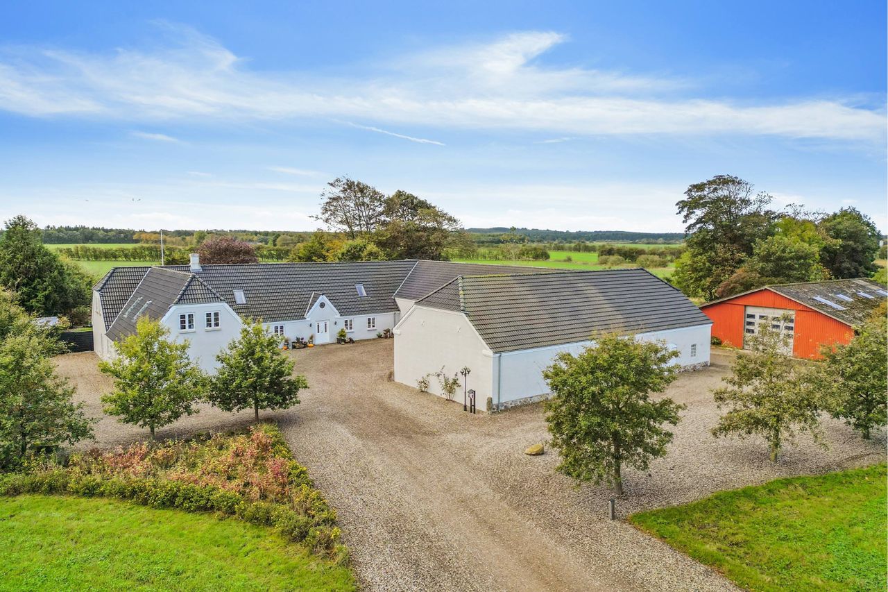 Ejendommen kan købes med tilhørende ca. 2,5 ha. Se sag 616-B