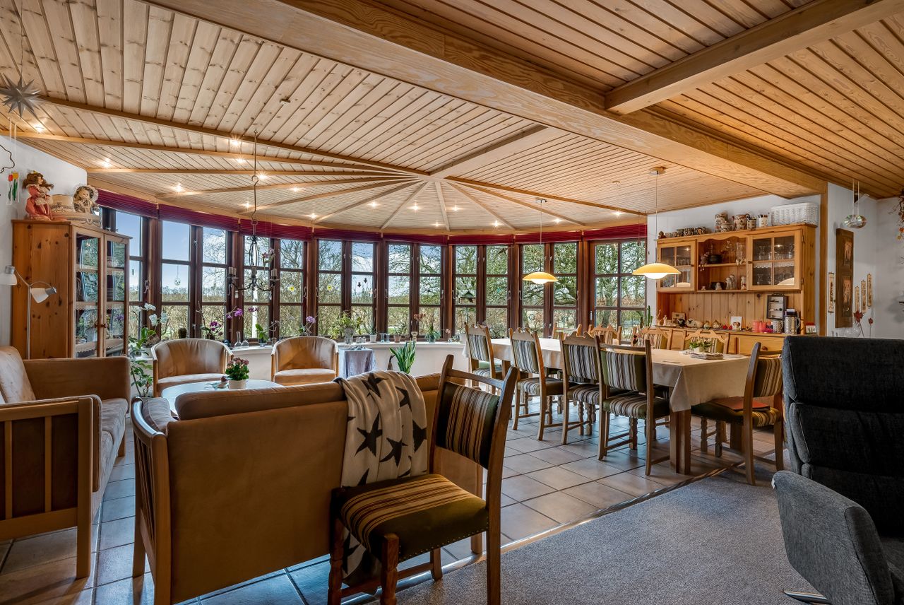 Her mødes charme og landlig idyl i en indbydende landejendom, hvor bolig, udbygninger og en smuk have med drivhus tilsammen danner en attraktiv helhed.Den tilhørende mark giver mange anvendelsesmuligheder, eksempelvis til hestehold.