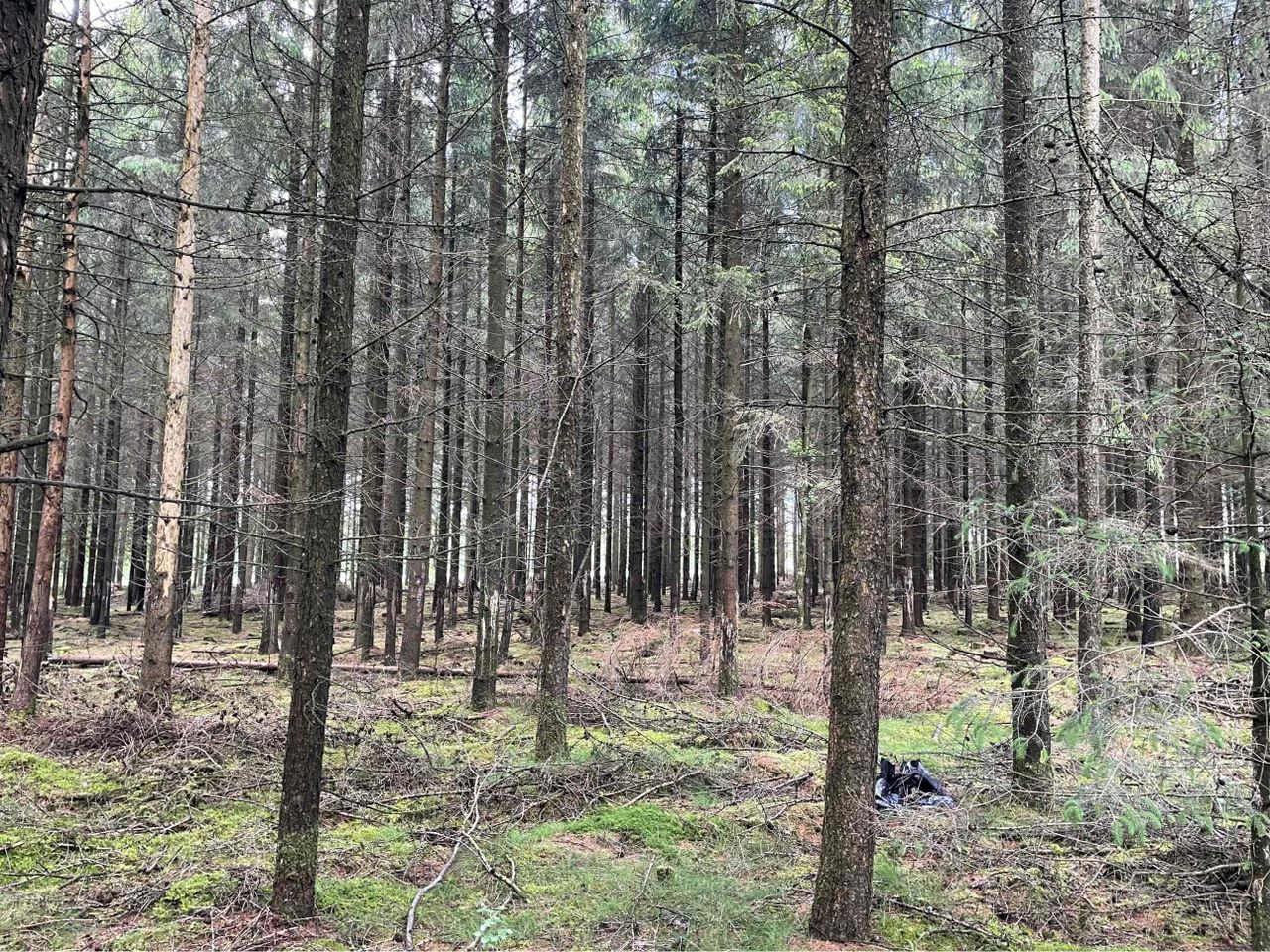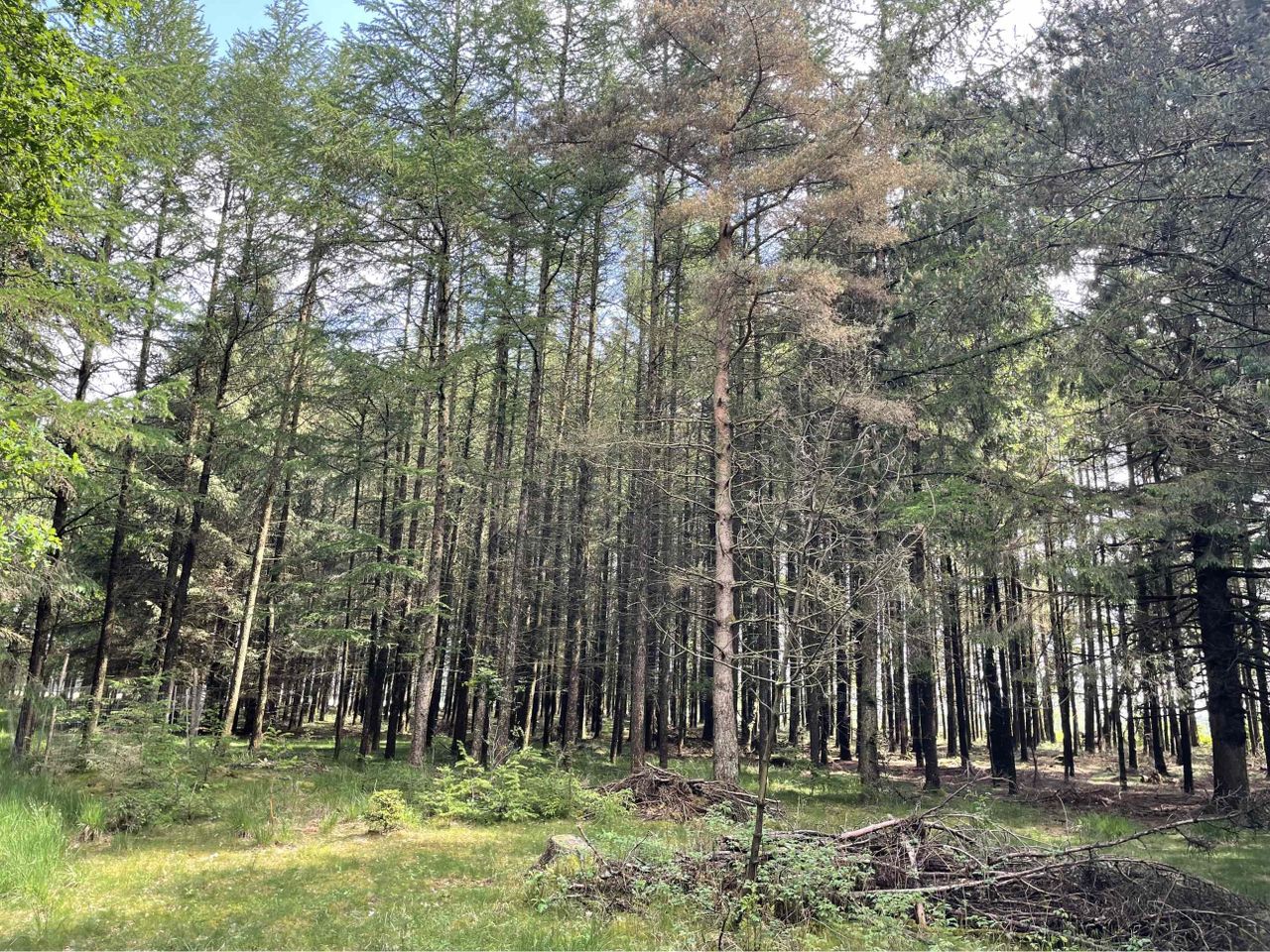 Med adgang fra privat fællesvej, finder du 2 ha skov bestående af rødgran, lærk og enkelte løvtræer.