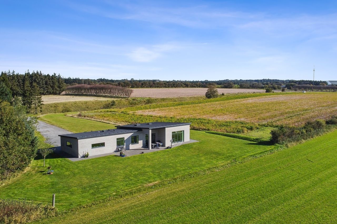 Lidt nord for Skals ligger denne ejendom, der er flyttet lidt væk fra bygrænsen for 5 år siden. Stuehuset ligger ude af syne fra både Hovedgaden ind mod byen og fra Løgstørvej, der går uden om Skals. Men udsigten er helt enestående og uden at der på noget tidspunkt kan være noget, der ødelægger den.