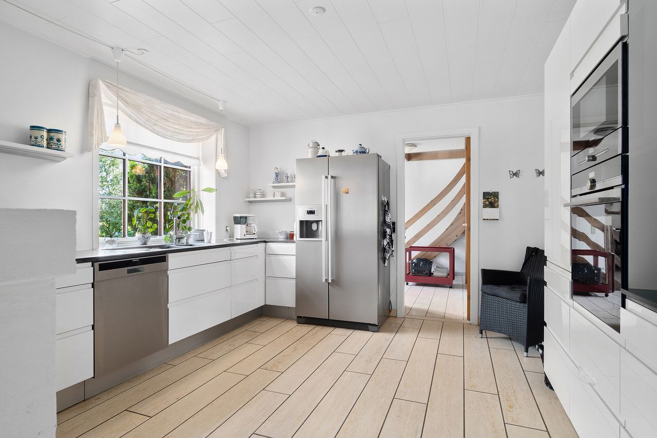 Boligen rummer hele 337 m2 og byder på en masse gode værelser, 2 stuer, et godt køkken-alrum med moderne elementer, 2 toiletter og et kæmpe badeværelse med spabad og sauna. Hertil kommer flere udbygninger samt en parklignende have.
