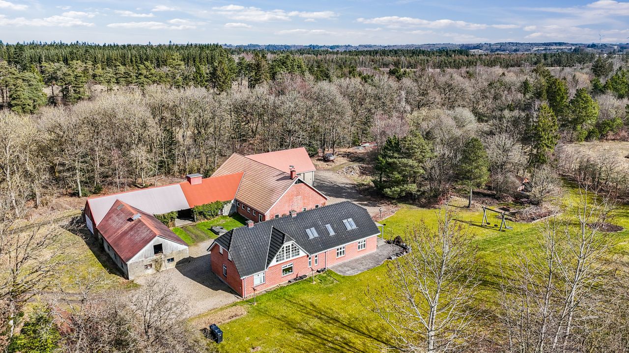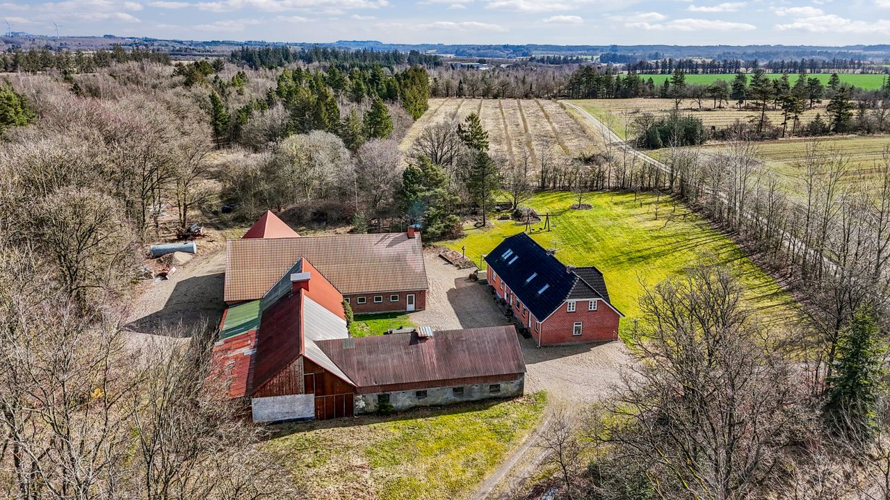 Dertil læhegn, der kan øge landbrugsarealet. Øvrig areal udgør skov og dejlig natur langs Rævind Bæk. Det rummelige flotte rødstensstuehus ligger midt på arealerne. højt beliggende med areal skrånende ned mod Rævind Bæk, der løber igennem det hele. Men med bækken liggende i bunden af en smeltevandsdal har den ingen betydning for dyrkbarheden af de store marker.