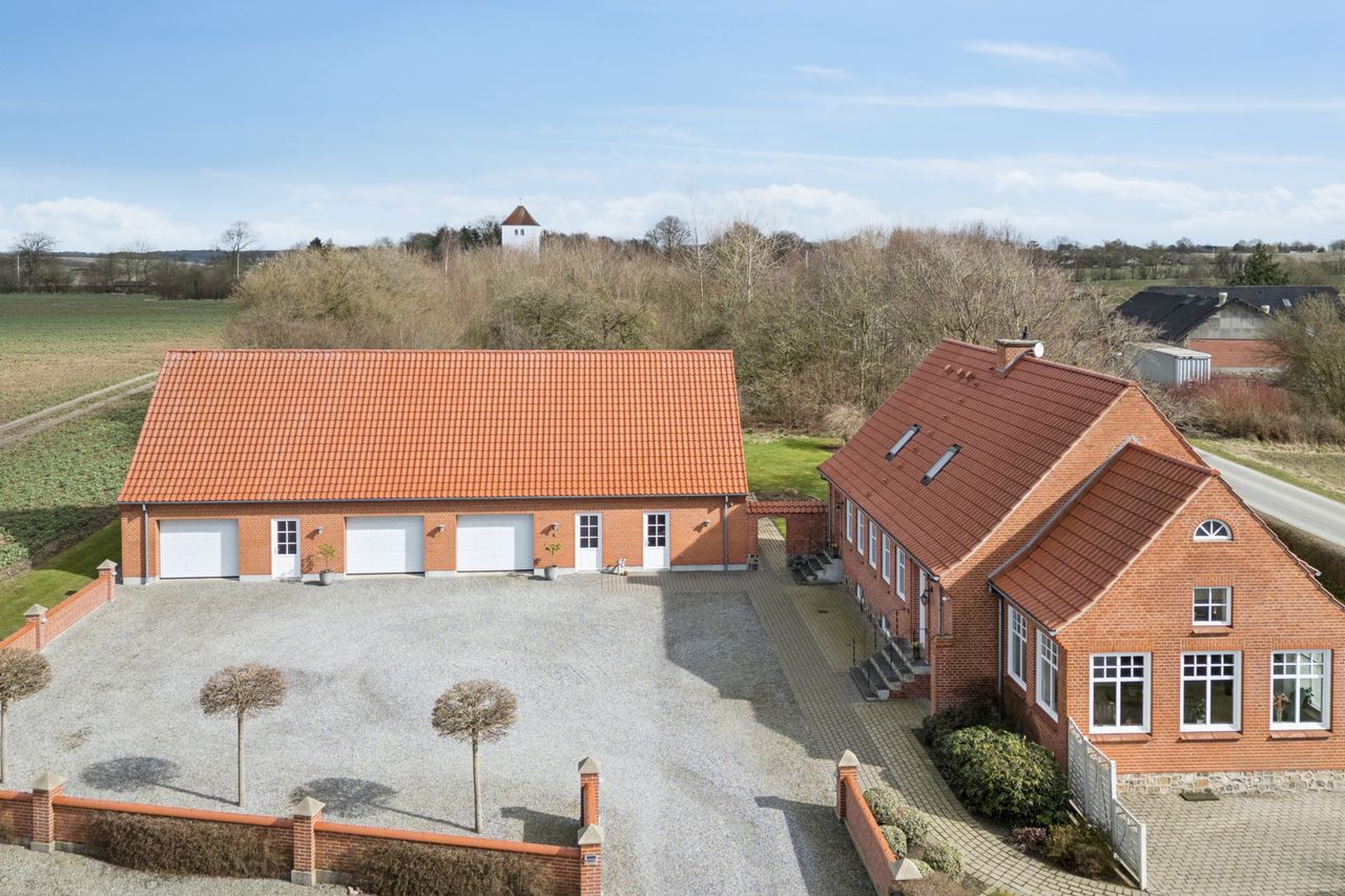 Lige på bygrænsen til Vinkel by med 7 km. til Viborg ligger denne meget velholdte rødstens ejendom.