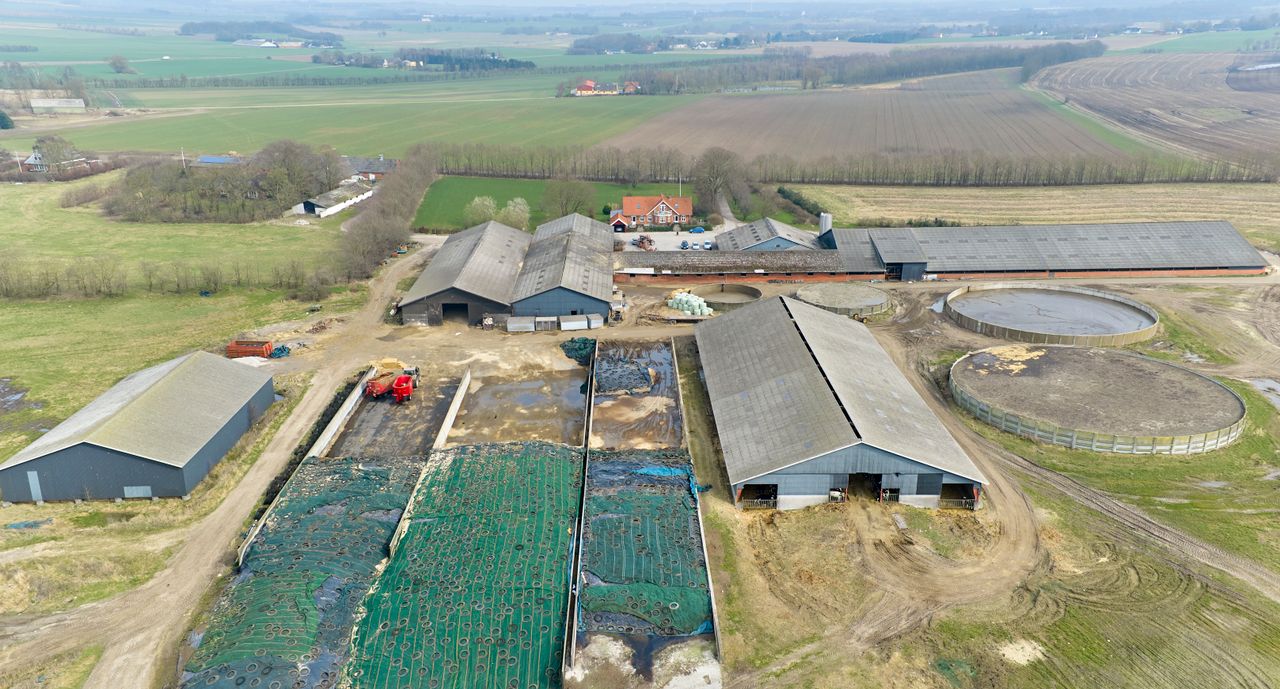 Samlet en fin bedrift med alle dyr samlet på en adresse, et par mindre huse til medarbejdere, lager til halm og maskiner på naboejendom, jorden ret samlet omkring hovedejendommen og en fin logistik i hverdagen.