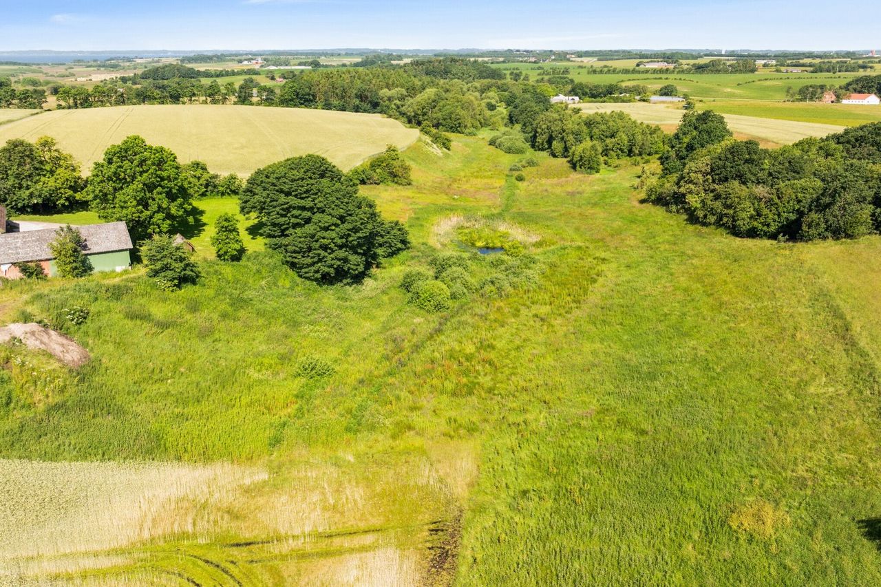 landejendom med udsigt fra gårdspladsen over sø/mose og en dejlig græsbeklædt dal. Velegnet til fold