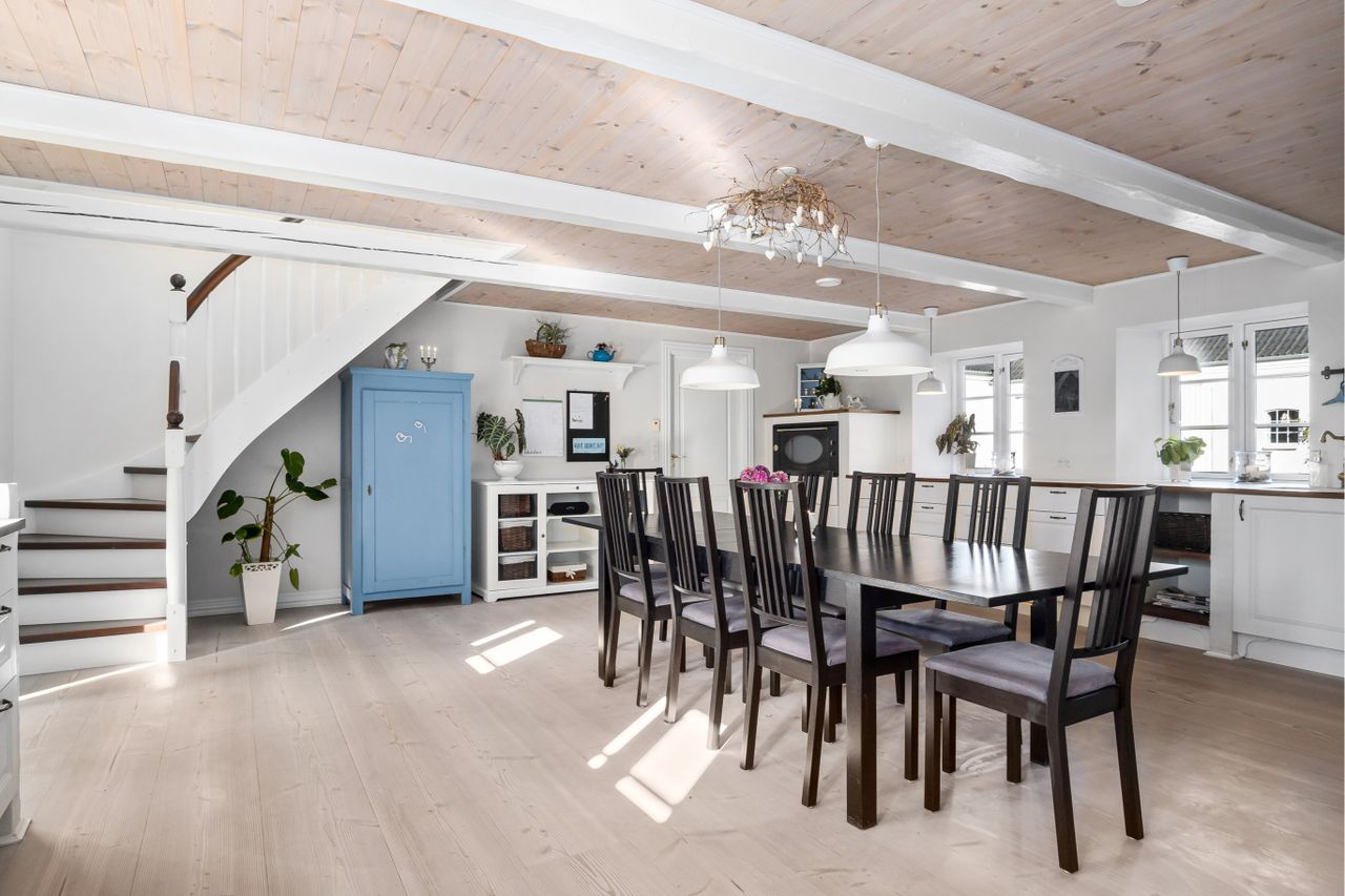 Bygningerne består af flot stuehus, totalrenoveret og delvis nybygget i 2007/2008, garage og staldbygning