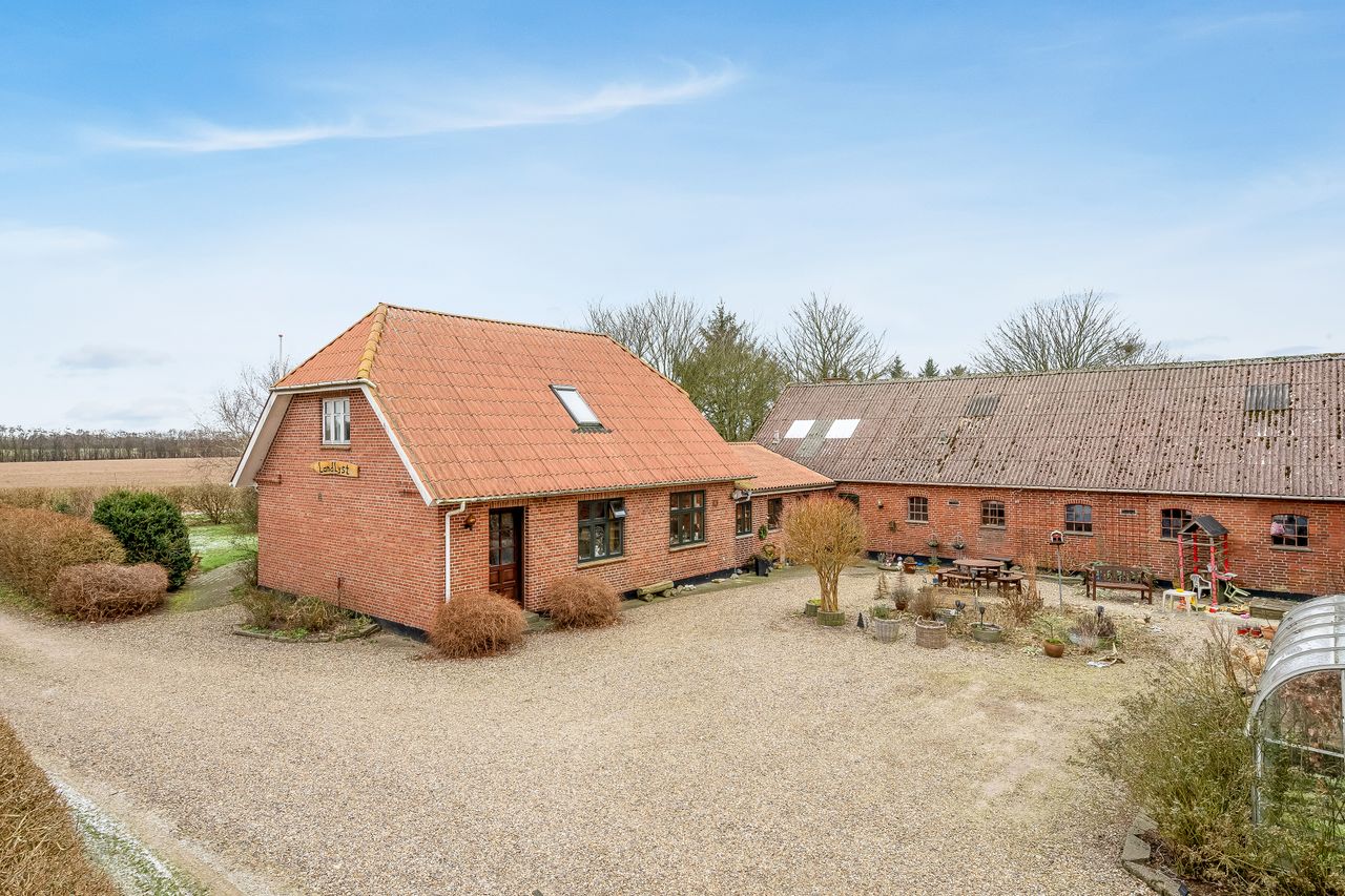 Her mødes charme og landlig idyl i en indbydende landejendom, hvor bolig, udbygninger og en smuk have med drivhus tilsammen danner en attraktiv helhed.Den tilhørende mark giver mange anvendelsesmuligheder, eksempelvis til hestehold.