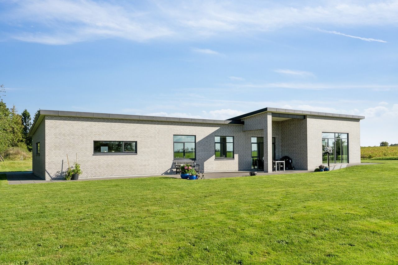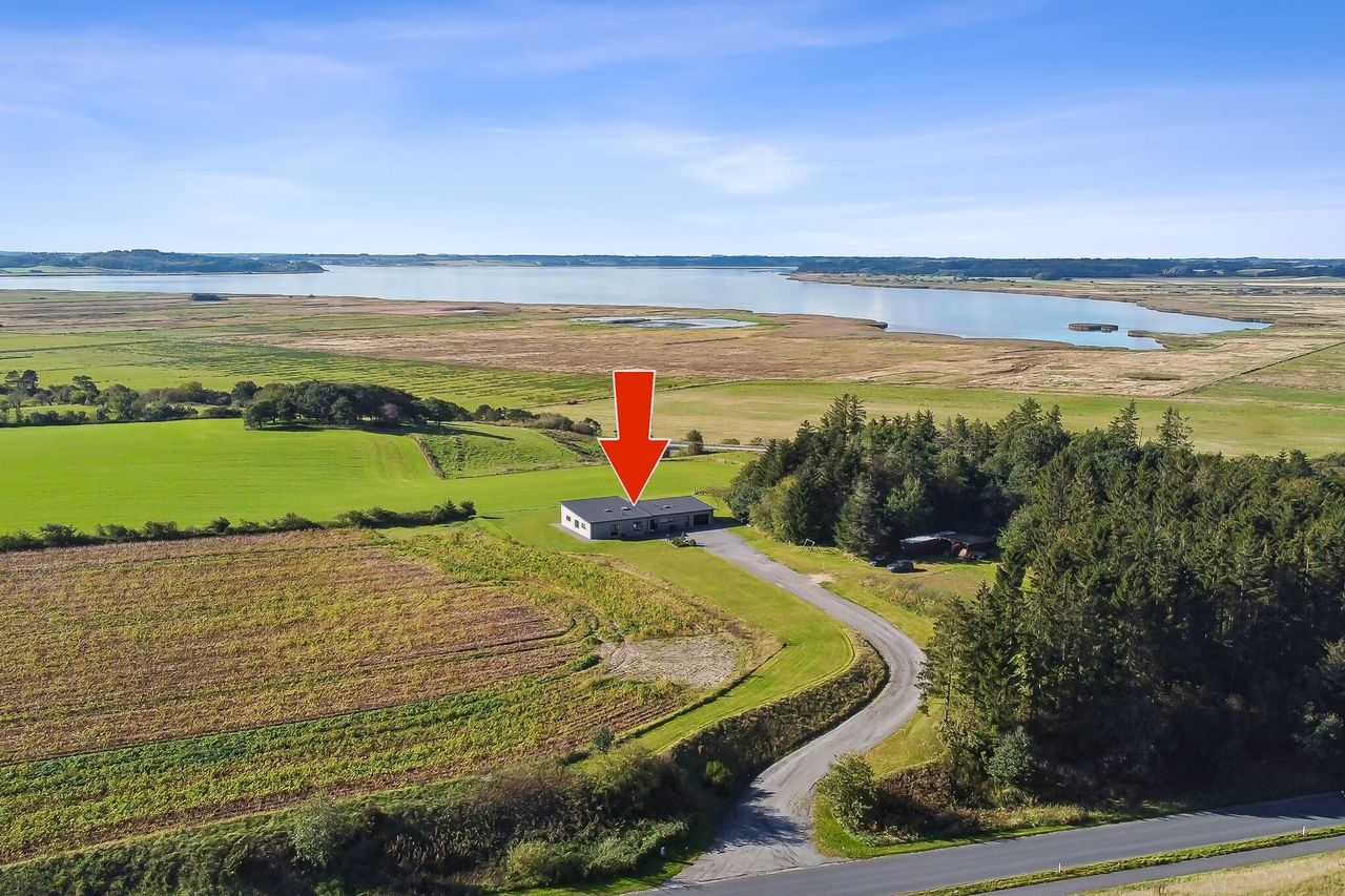 Lidt nord for Skals ligger denne ejendom, der er flyttet lidt væk fra bygrænsen for 5 år siden. Stuehuset ligger ude af syne fra både Hovedgaden ind mod byen og fra Løgstørvej, der går uden om Skals. Men udsigten er helt enestående og uden at der på noget tidspunkt kan være noget, der ødelægger den.