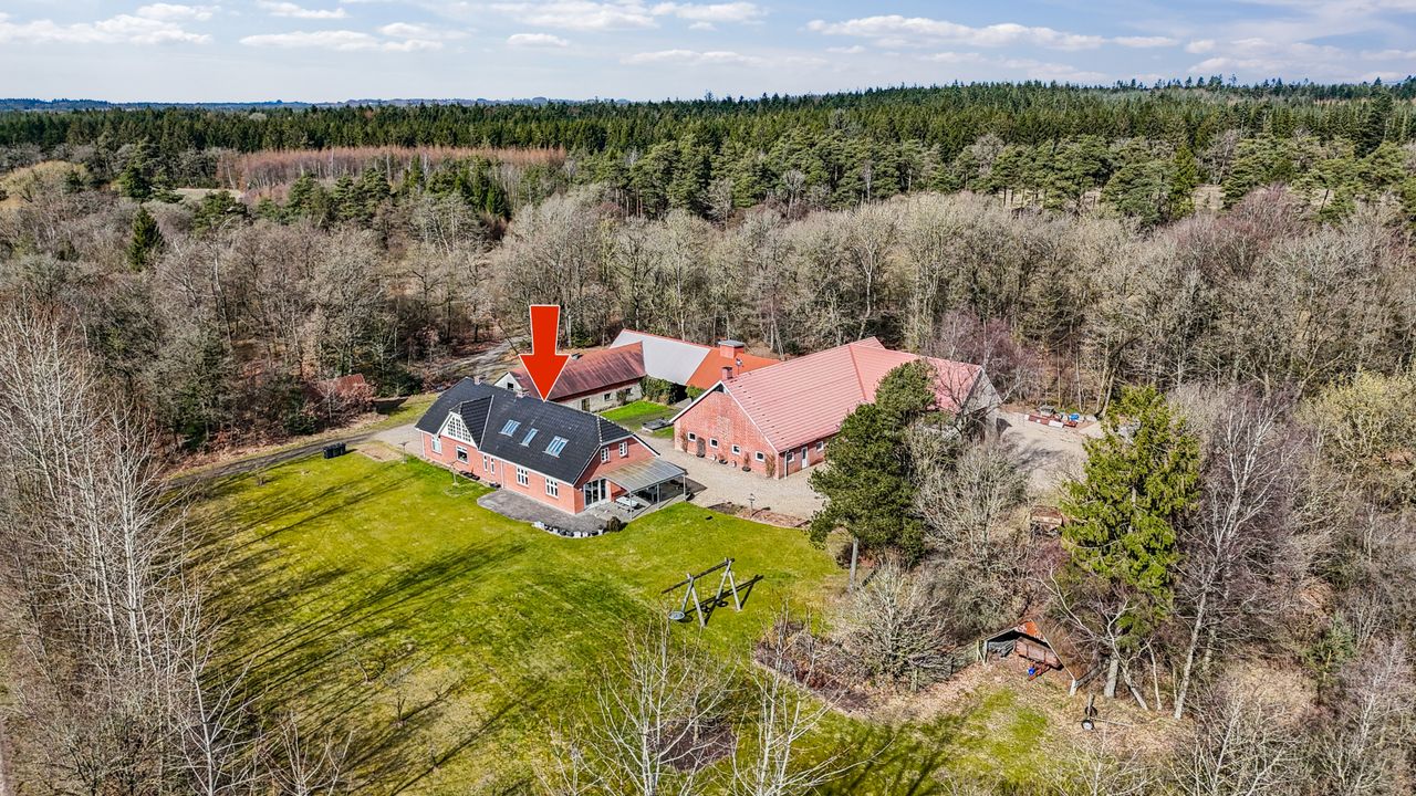 Dertil læhegn, der kan øge landbrugsarealet. Øvrig areal udgør skov og dejlig natur langs Rævind Bæk. Det rummelige flotte rødstensstuehus ligger midt på arealerne. højt beliggende med areal skrånende ned mod Rævind Bæk, der løber igennem det hele. Men med bækken liggende i bunden af en smeltevandsdal har den ingen betydning for dyrkbarheden af de store marker.