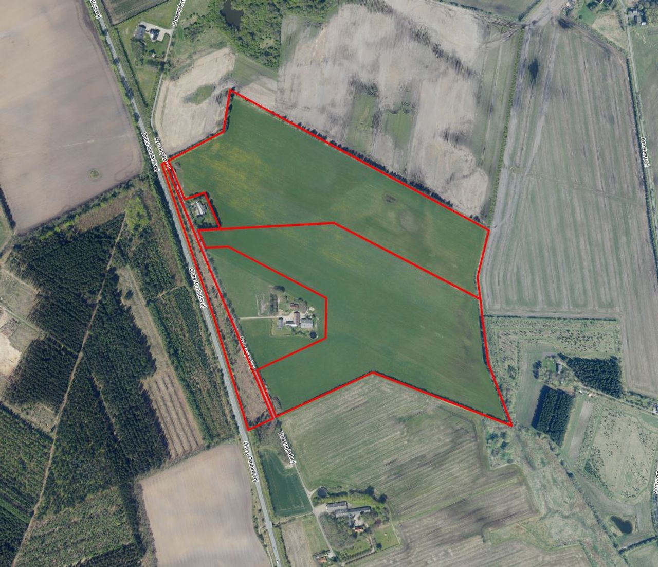 Ejendommen er en bygningsløs landbrugsejendom og kan erhverves af købere, der i forvejen ejer en landbrugsejendom i Danmark.