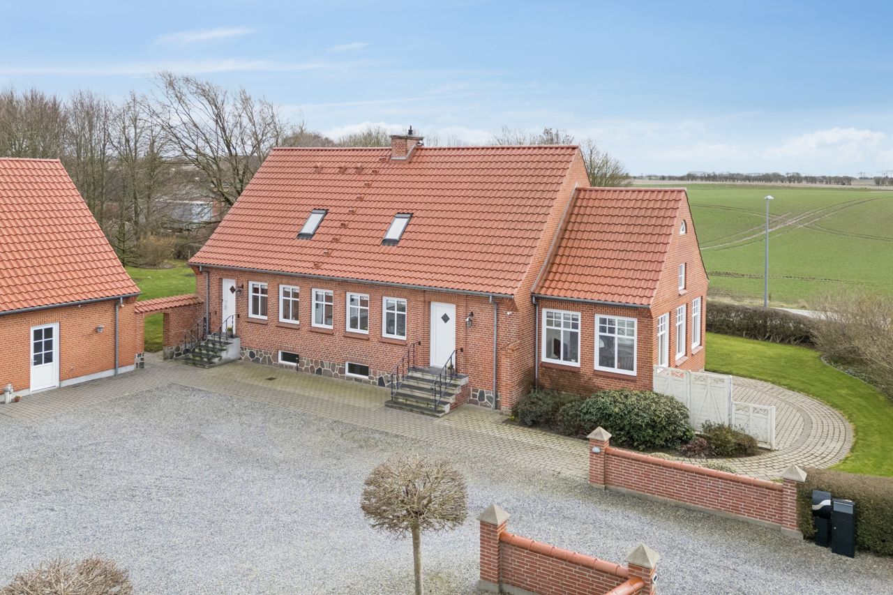 Lige på bygrænsen til Vinkel by med 7 km. til Viborg ligger denne meget velholdte rødstens ejendom.