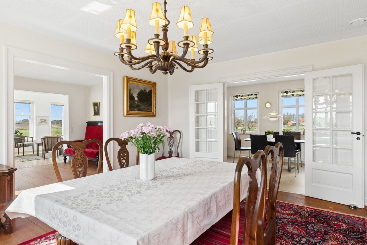 Her er et rummeligt stuehus med kælder, stueplan og 1 sal. 2 badeværelser stort køkkenalrum, 3 stuer ( en suite) og værelser.